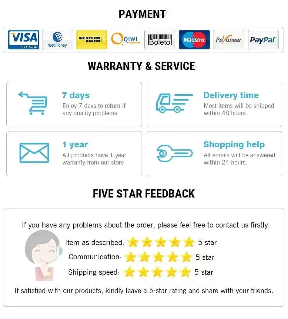 If you are satisfied in any way, please do not hesitate to contact us before our negative feedback, I will solve all problems for you. Remember, the order is over, but our service isn't over yet.